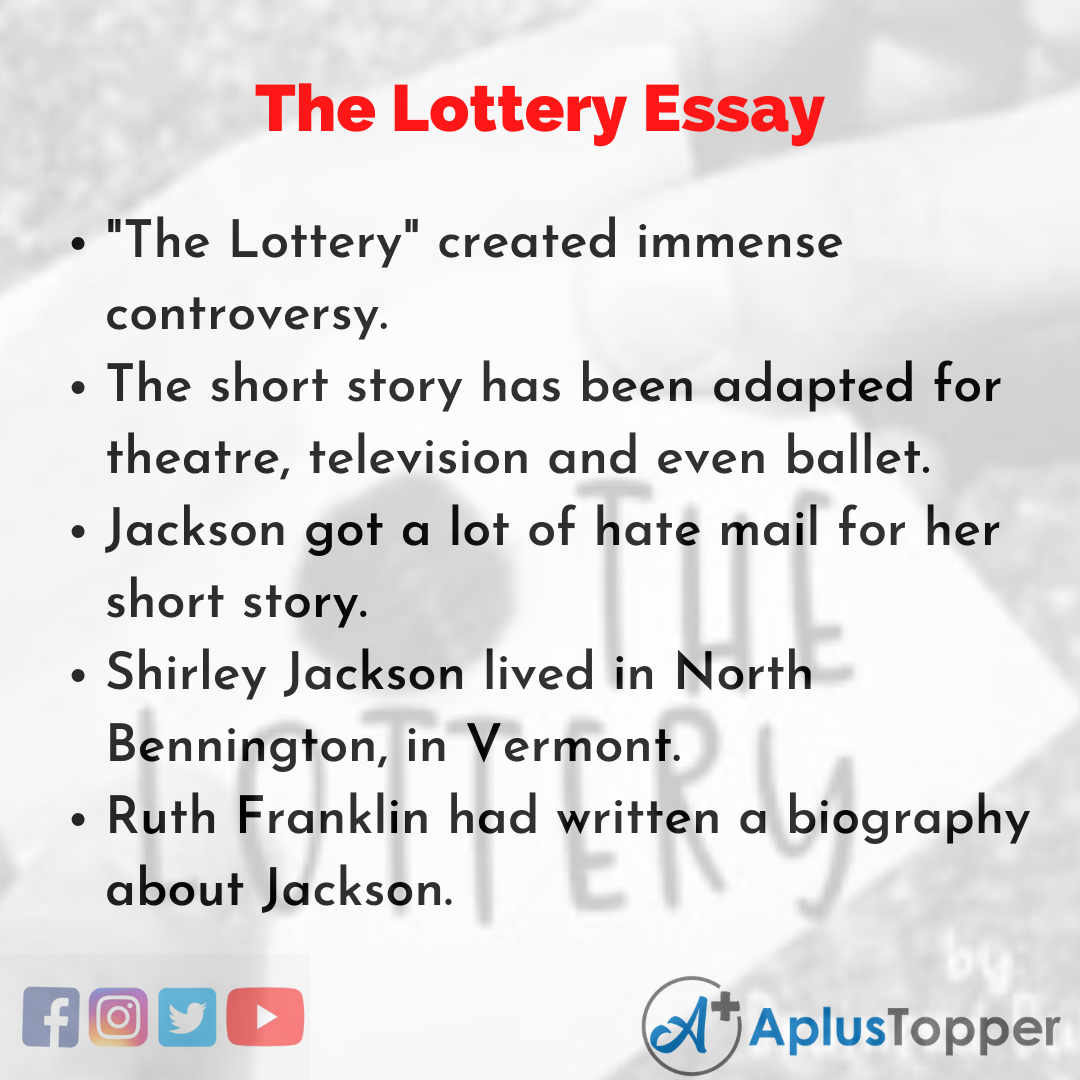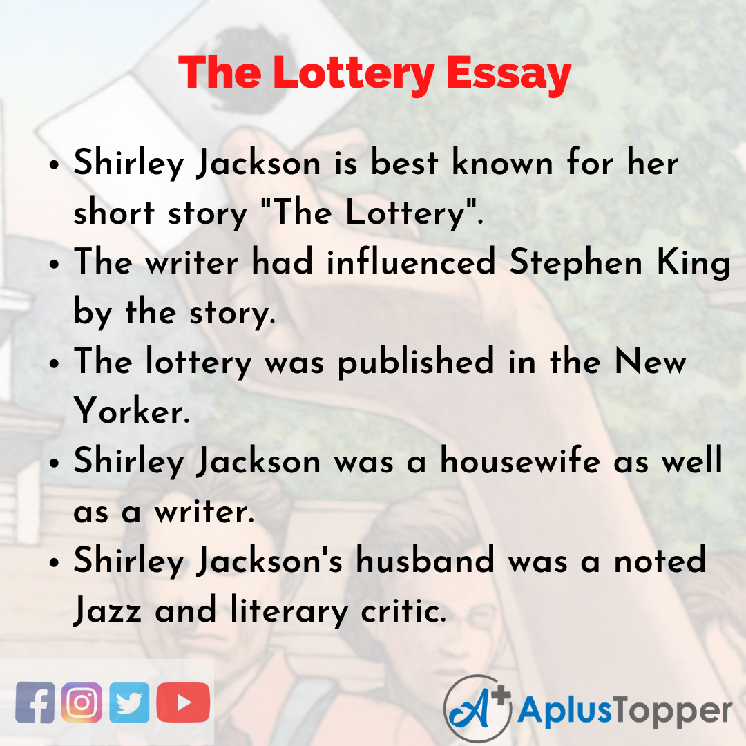 Short Essay on the Lottery is usually given to classes 1, 2, 3, 4, 5, and 6.