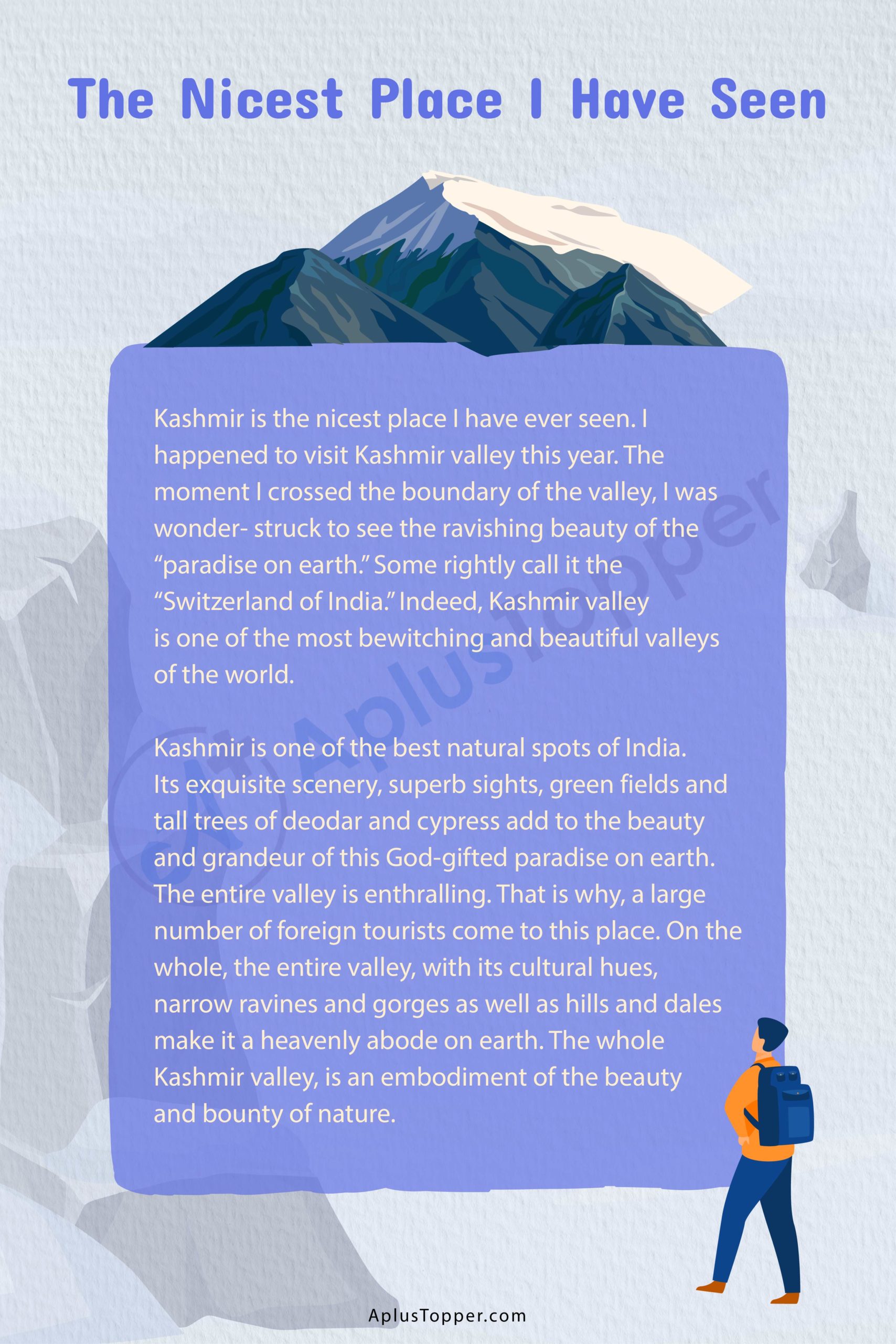 The Nicest Place I Have Seen Essay – Given below is a Long and Short Essay on The Nicest Place I Have Seen of competitive exams, kids and students belonging to classes 1, 2, 3, 4, 5 6, 7, 8, 9, and 10. The Nicest Place I Have Seen essay 100, 150, 200, 250, 500 words in English helps the students with their class assignments, comprehension tasks, and even for competitive examinations.