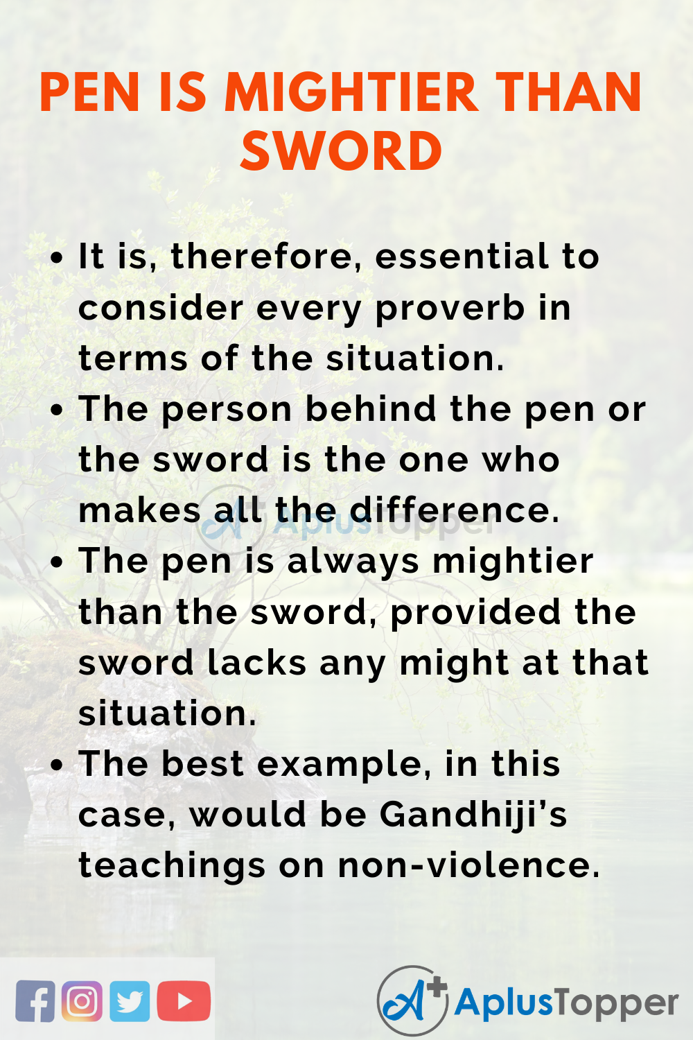The Pen is Mightier than the Sword Essay is usually given to classes 7, 8, 9, and 10.