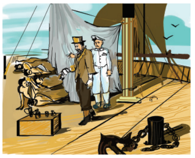The ship was crowded with pleasure seekers and tourists. There was a large number of Anglo- Indian army officers. Many of them were with their wives and families. From the start, there was gaiety on board. The chief among the social promoters was Miss Jope- Smith. She was over 30, but she had a dashing style to look younger. She was snob and a bore. We reached Port Said. Everyone went ashore excitedly. They bought silks, shawls, cigarettes, scent and jewellery. We passed the Red Sea, and the barren rock of Aden. Now we were in the Arabian Sea.