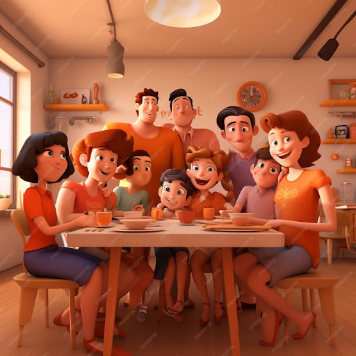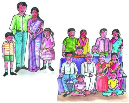 In picture A, we observe a nuclear family that consists of a pair of adults and their children. In picture B, we observe a joint family that consists of a man (the head), his wife, their children, daughters-in-law and their grandchildren.