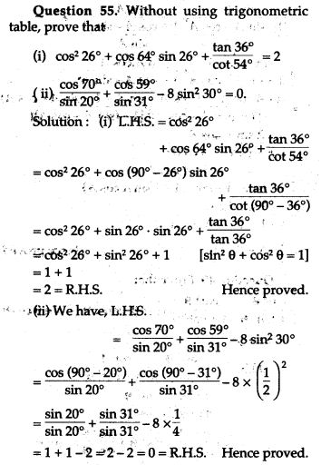 Trigonometry – ICSE Solutions for Class 10 Mathematics