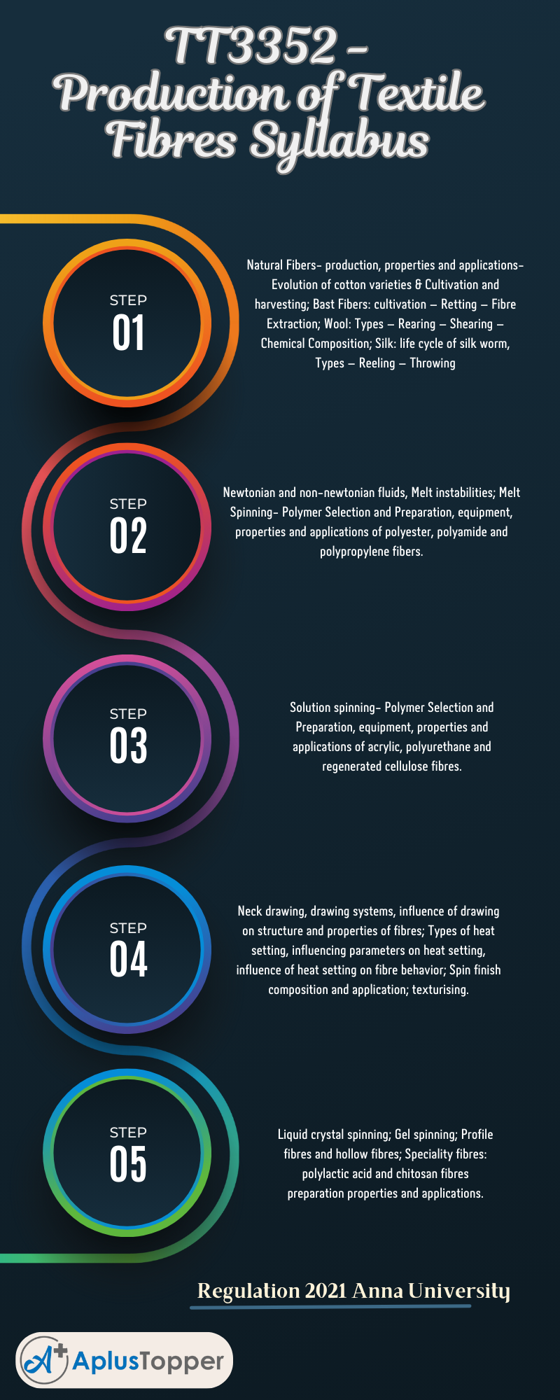 We aim to provide the following semester TT3352 – Production of Textile Fibres syllabus in a detailed manner. We include the appropriate syllabus textbooks and references. Hope this information is useful. Don’t forget to share with your classmates.