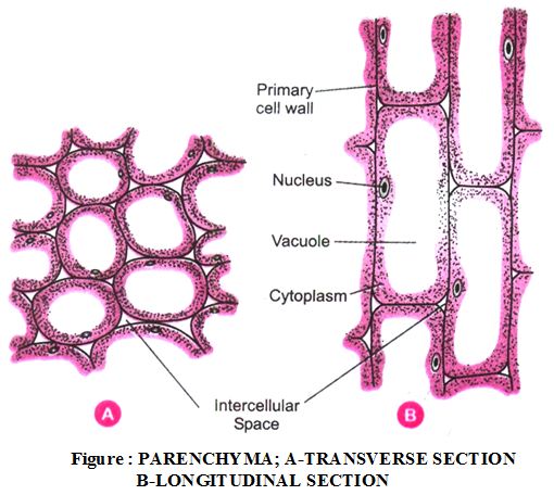 - The parenchyma tissue is composed of living cells which are variable in thin morphology and physiology but generally having thin wall and a polyhedral shape and concern with vegetative activities of the plant.