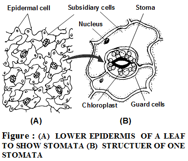 Each stomata is bounded by a pair of specialised epidermal cells called guard cells.The stomata allows gaseous exchange to occur during photosynthesis and respiration.
