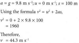 Example 4. A ball is dropped from a building and undergoes free fall. What is its velocity just before it touches the ground which is 100 m from where it is dropped?