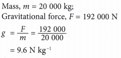 Example 3. At a particular point above the Earth, an aircraft of mass 20 000 kg experiences a gravitational force of 192 000 N. Calculate the gravitational field strength at that point.