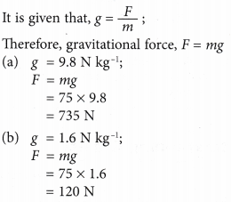 Example 1. An astronaut has a mass of 75 kg. Calculate the gravitational force on the astronaut when he is standing