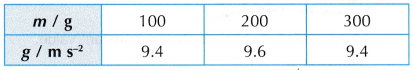 - The values of g for different masses are almost the same. This shows that the gravitational acceleration is constant. It does not depend on the value of the mass.