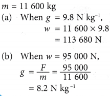 (b) What is the value of the gravitational field strength if its weight at a particular orbit above the Earth is 95000 N?