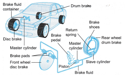 Figure shows the brake system of a car.