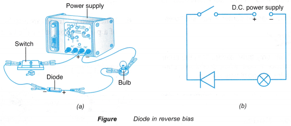 - The connection of the diode is reversed as shown in Figure. The cathode of the diode is connected to the positive terminal of the d.c. power supply. What happens to the bulb is observed.