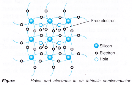 - When an intrinsic semiconductor is connected in a circuit as shown in Figure, the current which flows in it consists of both electron current and hole current. However, the electron current and hole current are not necessarily equal due to their different effective masses.