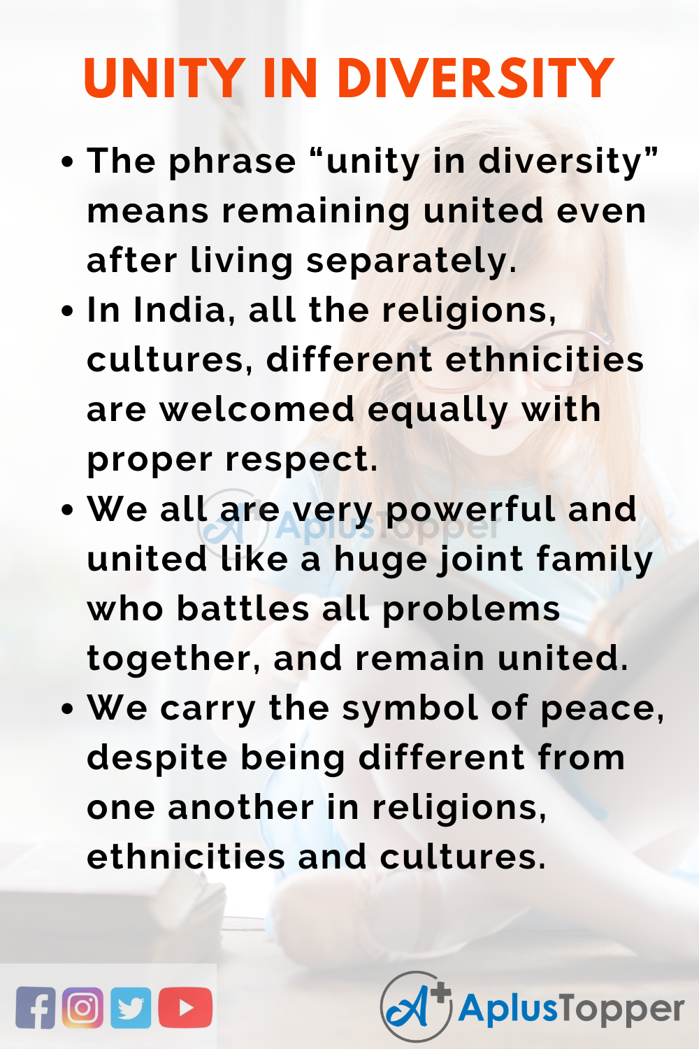 Long And Short Speeches On Unity In Diversity for Kids And Students in English