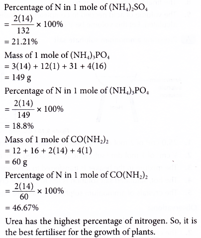 (d) Urea, CO(NH2)2 - The effectiveness of ammonium fertilisers is determined by the percentage of nitrogen by mass in them.