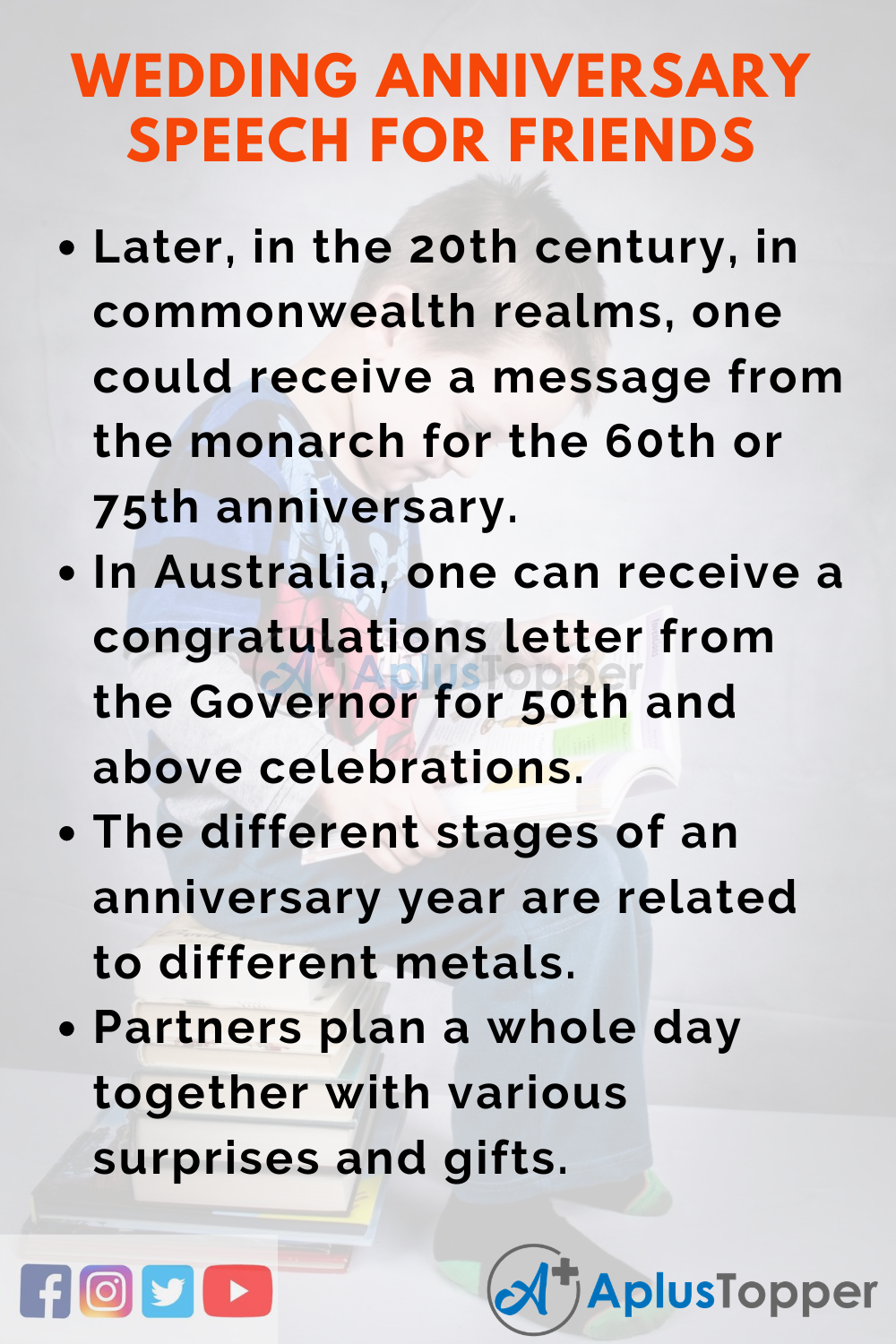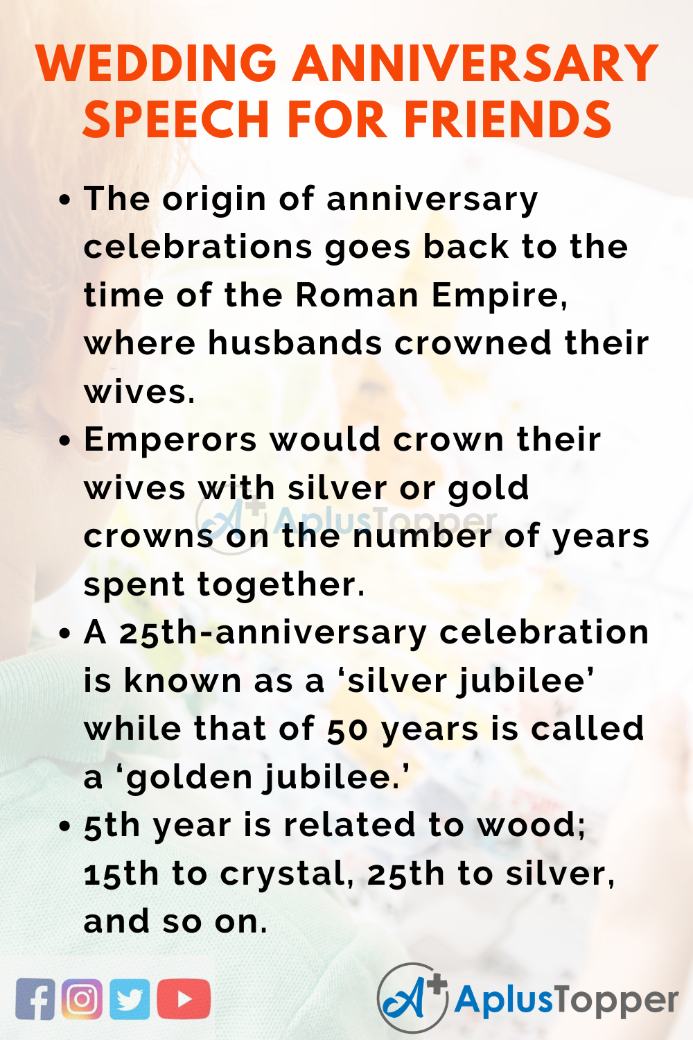 Short Speech On Wedding Anniversary for Friends 150 Words In English