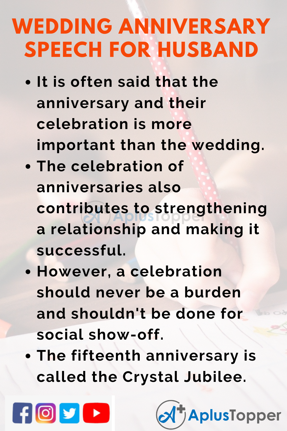 Long And Short Speeches on Wedding Anniversary for Husband In English for Kids And Students