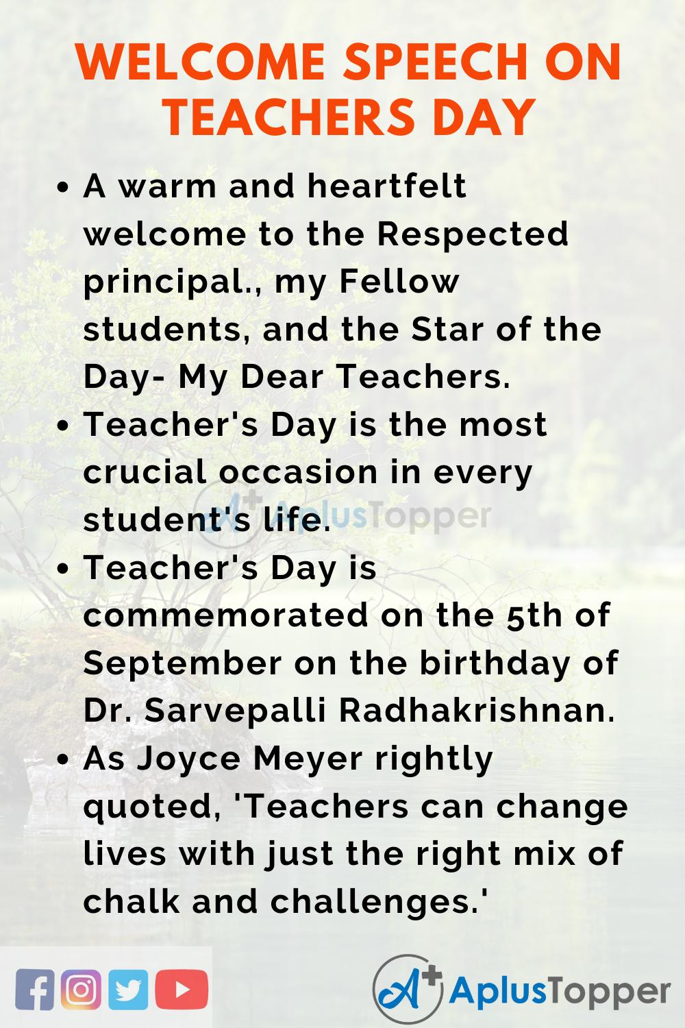 What are the points to remember during a welcome speech on Teacher’s Day?