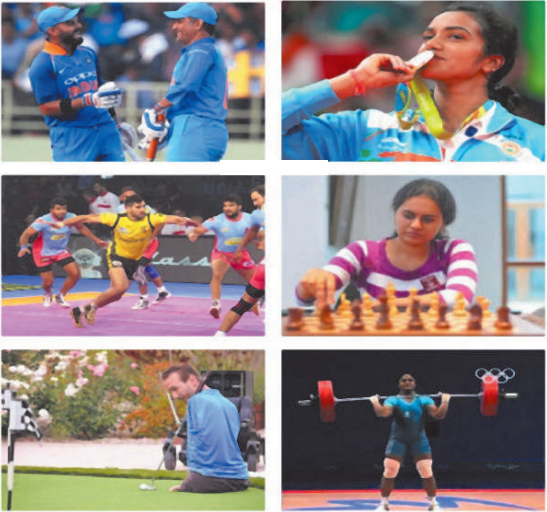 We can find cricket, badminton, kabaddi, chess, golf and weightlifting.