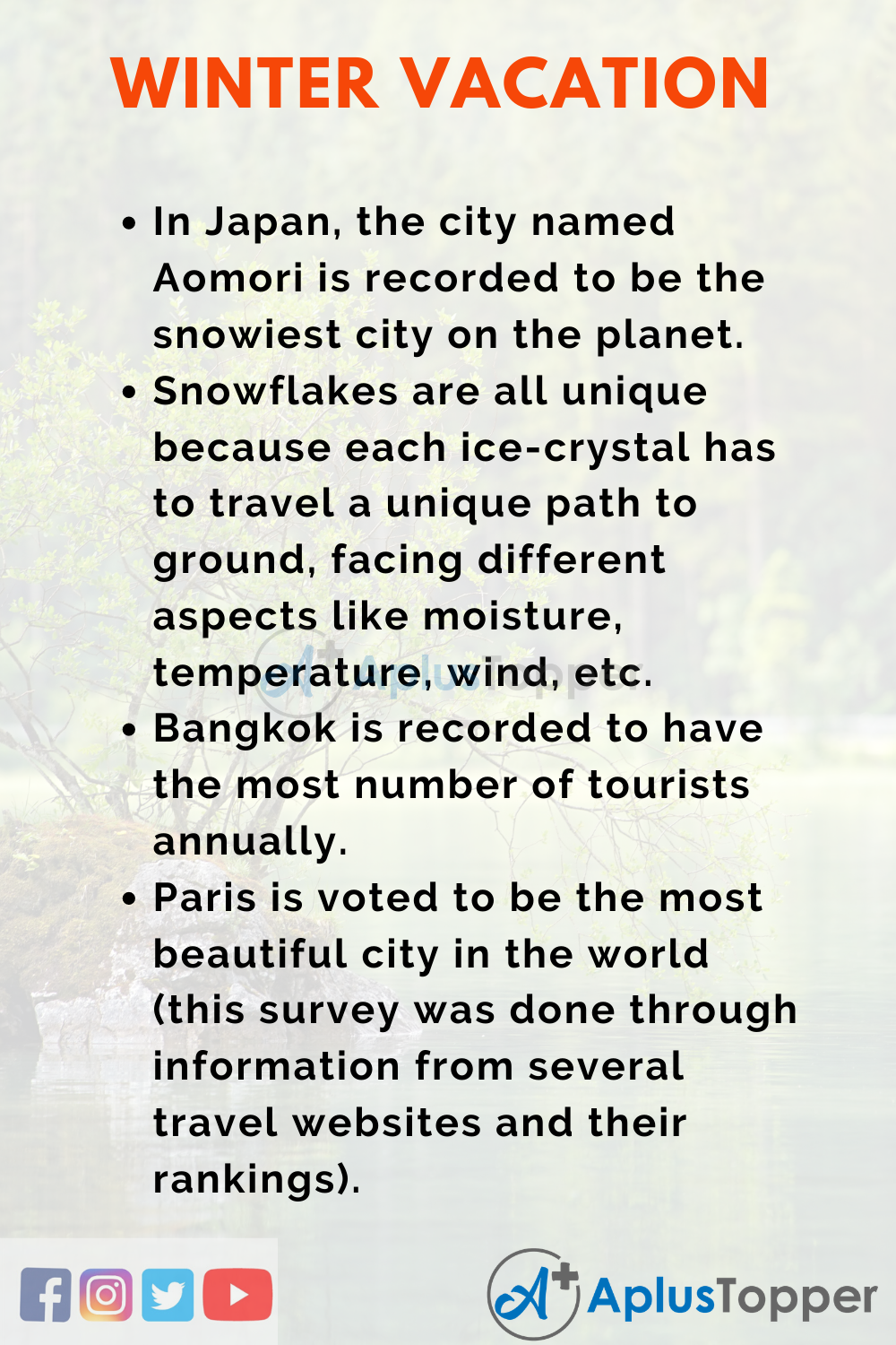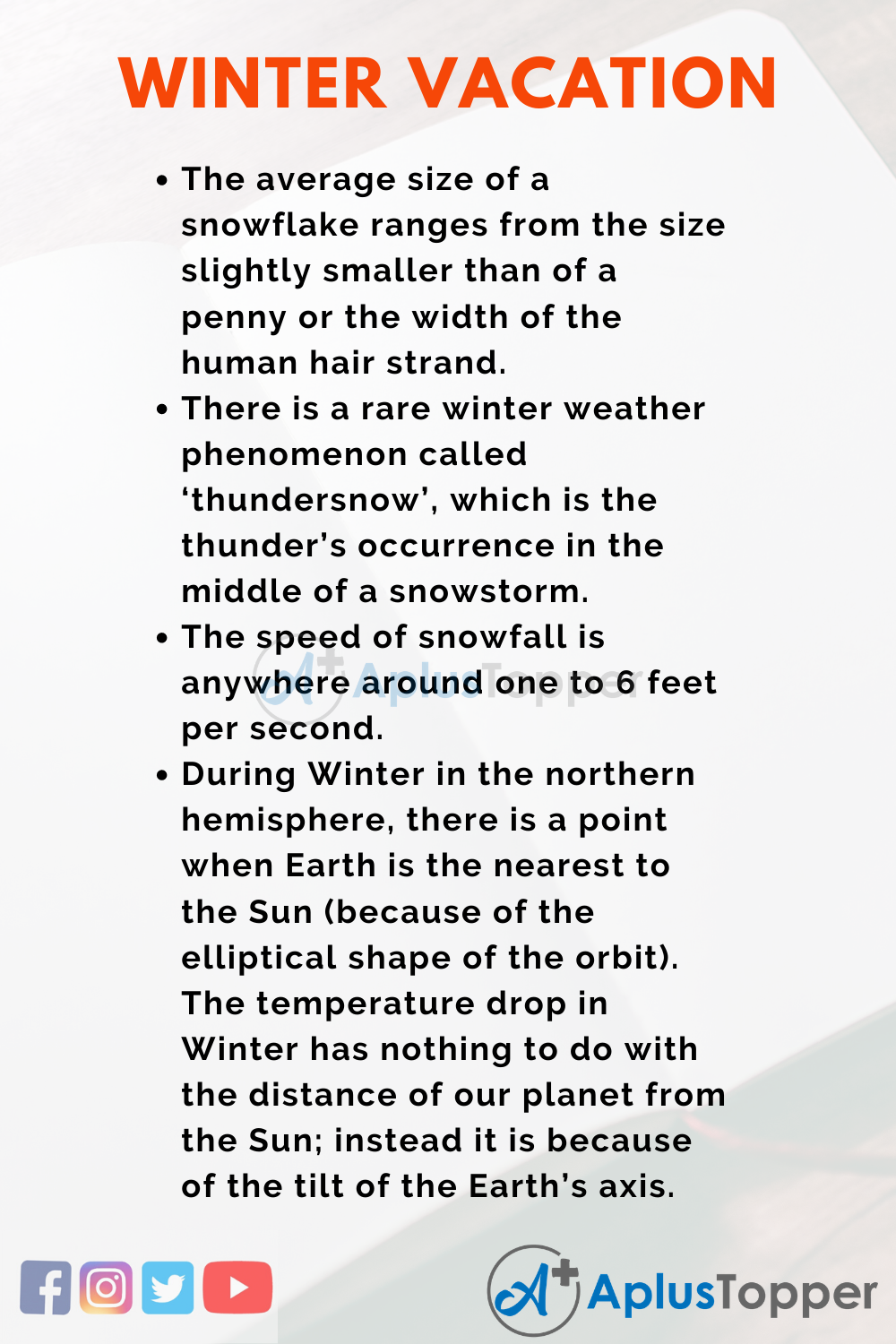 Winter Vacation Essay is usually given to classes 7, 8, 9, and 10.
