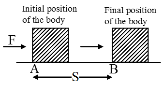 Work done by a force: Work is said to be done by a force if the direction of displacement is the same as the direction of the applied force.