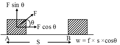 Consider a force ‘F’ acting at angle θ to the direction of displacement ‘s’ as shown in fig.