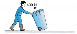 Example 12. A worker uses a horizontal force of 400 N to push a rubbish cart.