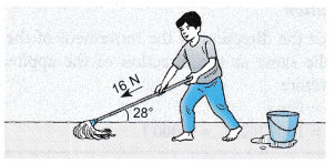 Example 14. Jin uses a force of 16 N to mop a floor. The applied force makes an angle of 28° with the floor.