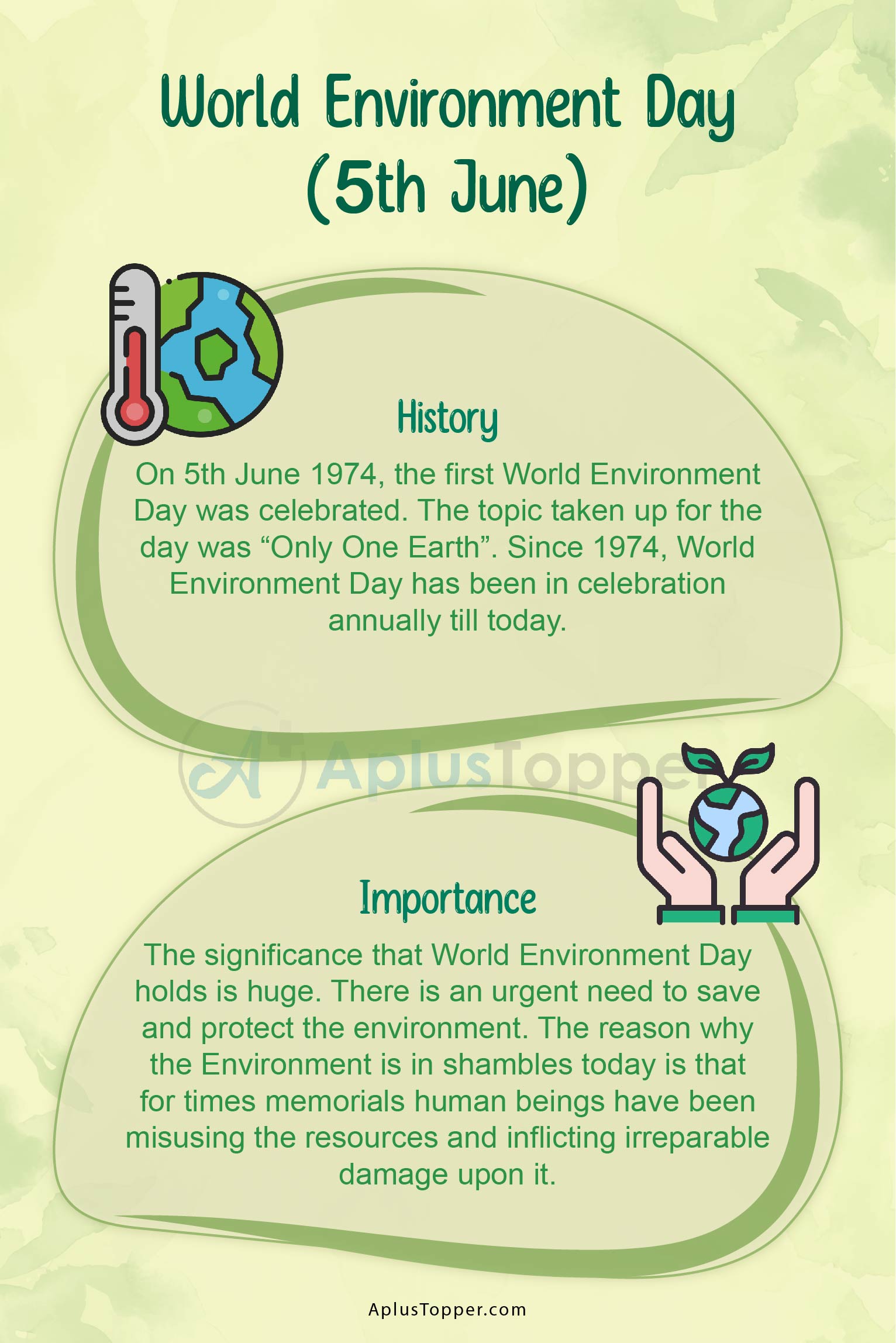 On 5th June 1974, the first World Environment Day was celebrated. The topic taken up for the day was “Only One Earth”. Since 1974, World Environment Day has been in celebration annually till today.
