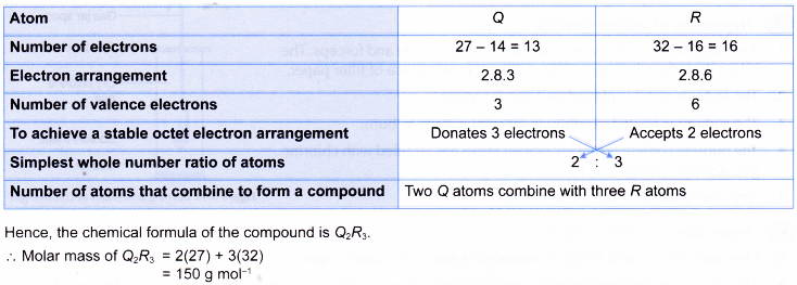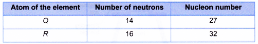 3. The following table shows the number of neutrons and the nucleon numbers of atoms of elements Q and R. Q and R are not the actual symbols of the elements.